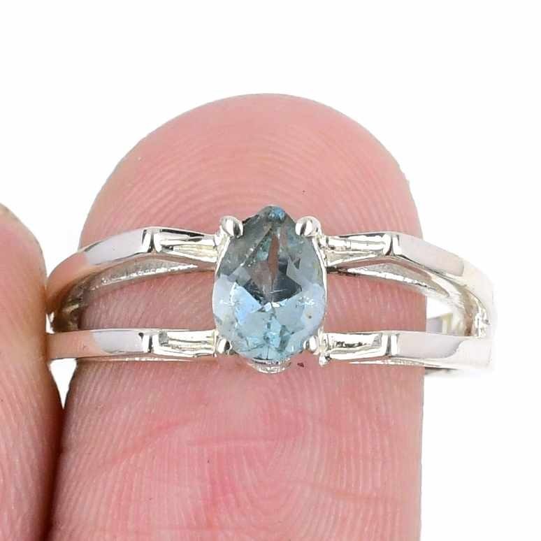 Aquamarine Gemstone Solid Silver Statement Daughter Gift New Ring Jewelry US 10