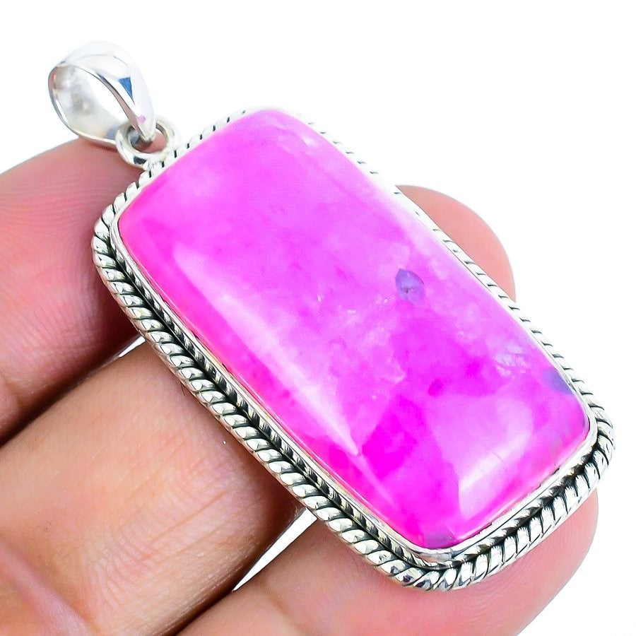 Pink Moonstone Gemstone Solid Silver Art Deco Boho Daughters Day Pendant Jewelry