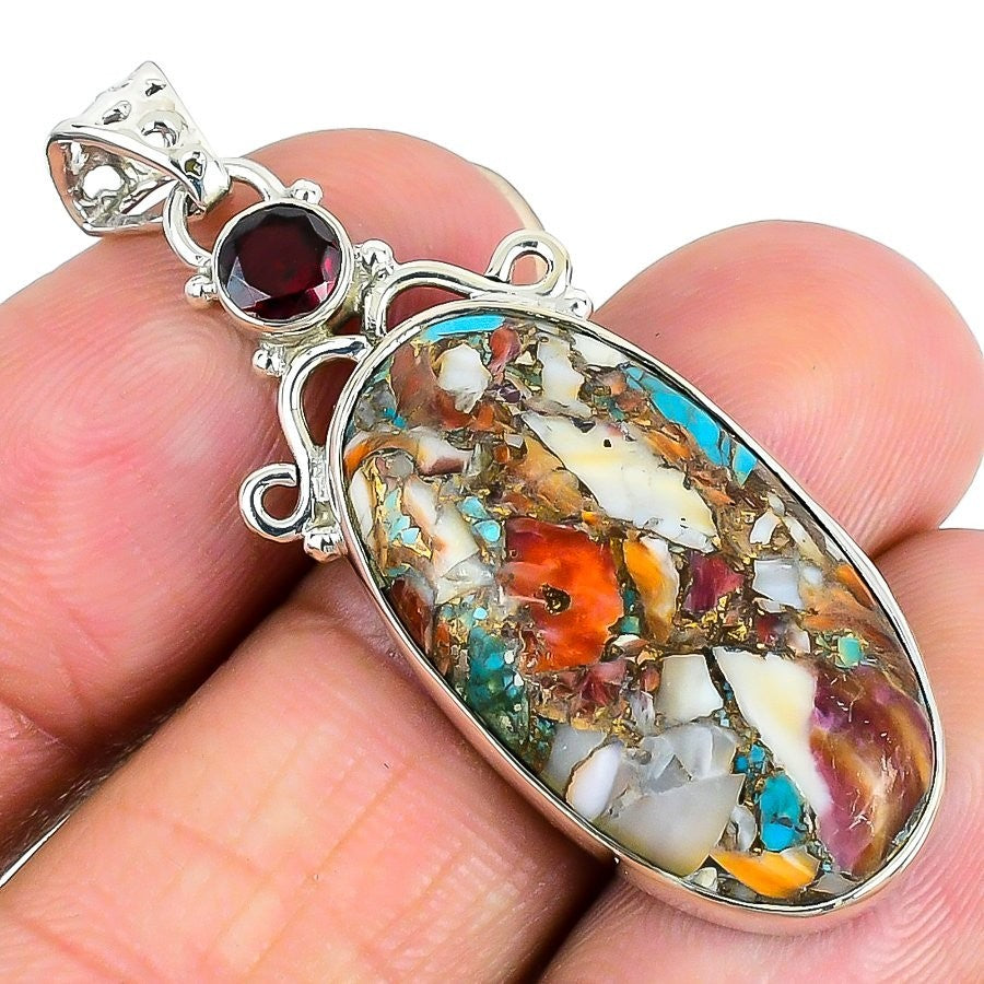 Spiny Oyster Turquoise Stone Sterling Silver Boho Mother Ethnic Pendant Jewelry