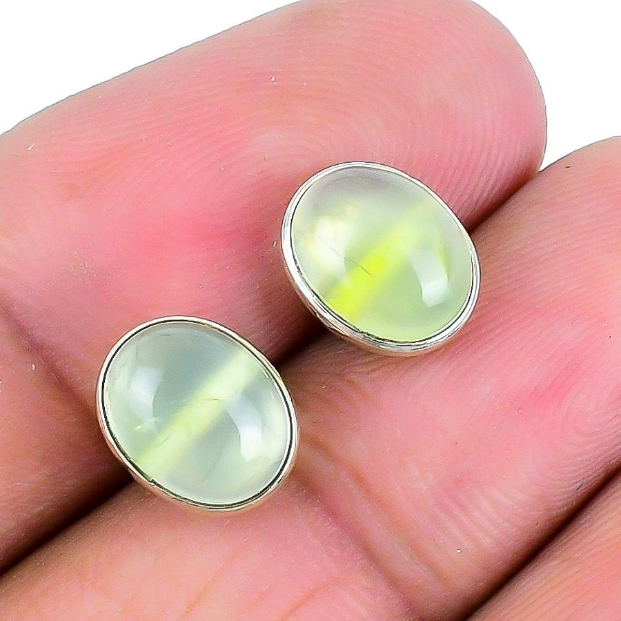 Prehnite Stone Solid Sterling Silver Push Back Stud Post Daughter Gift Earrings