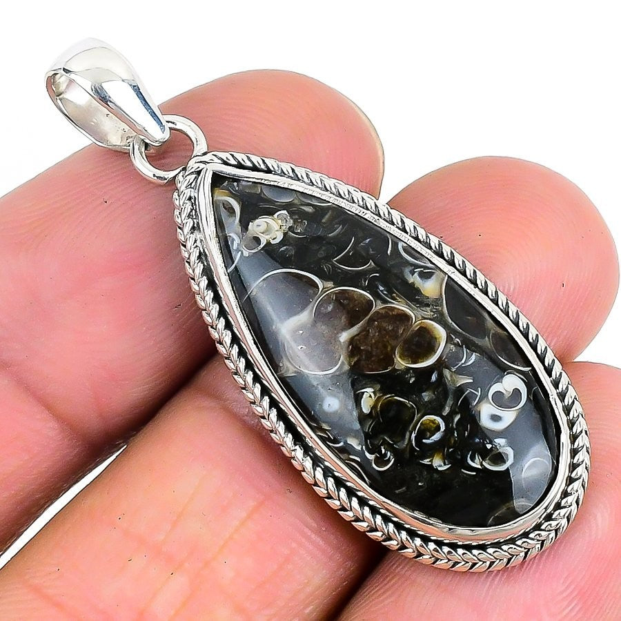 Natural Turtilla Fossil Wedding Art Deco Birthday Pendant Solid Sterling Silver