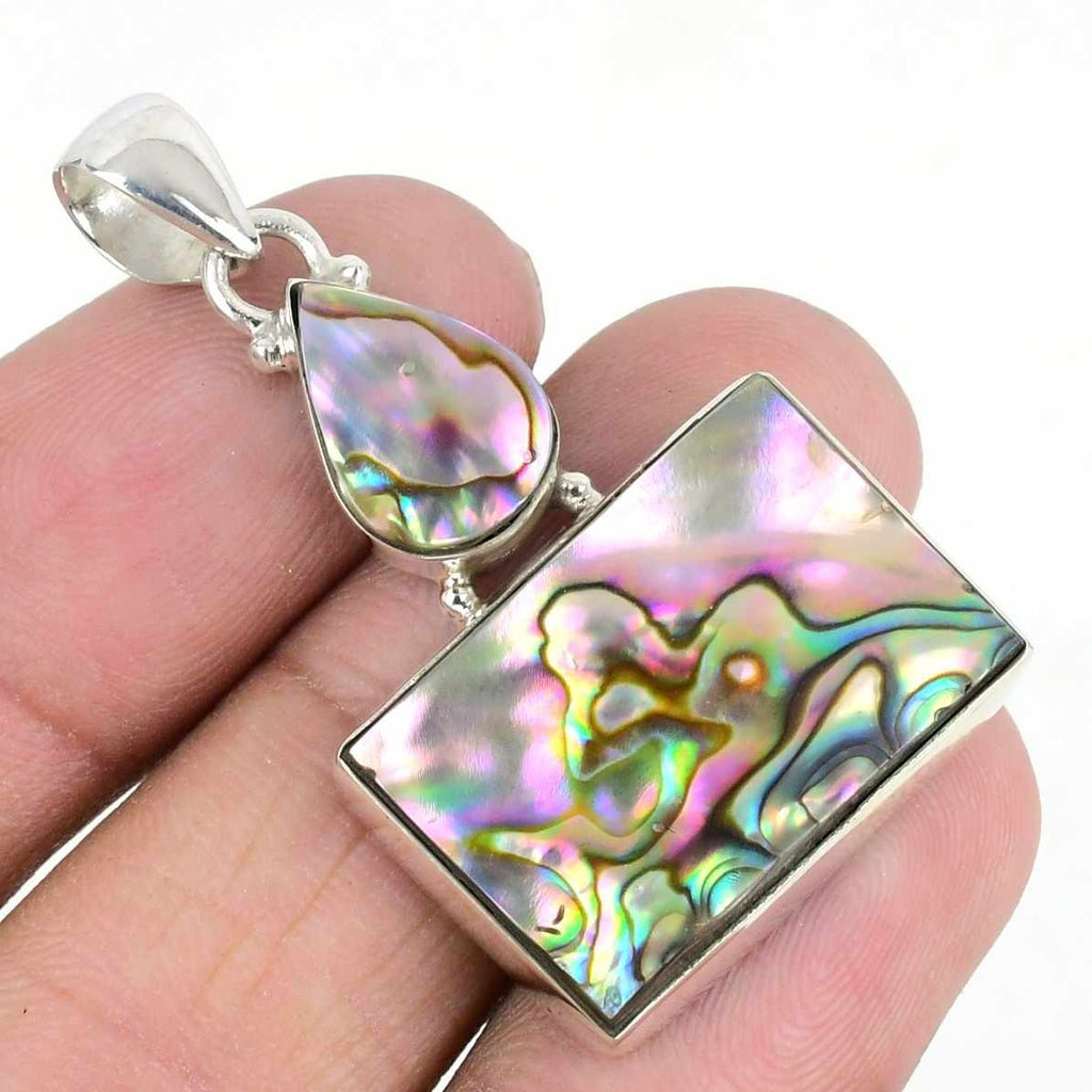 Natural Abalone Shell Solid Sterling Silver Handcrafted Handmade Pendant Jewelry