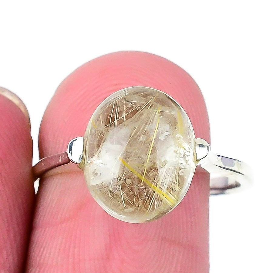 Natural Golden Rutile 925 Silver Cluster Birthday Artisan Ring Jewelry Size 8.5