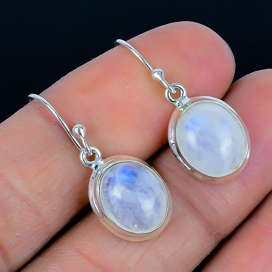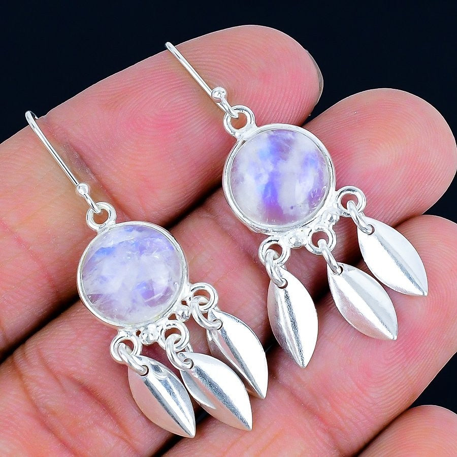 Natural Rainbow Moonstone Solid Sterling Silver Wife Drop Dangle Unique Earrings