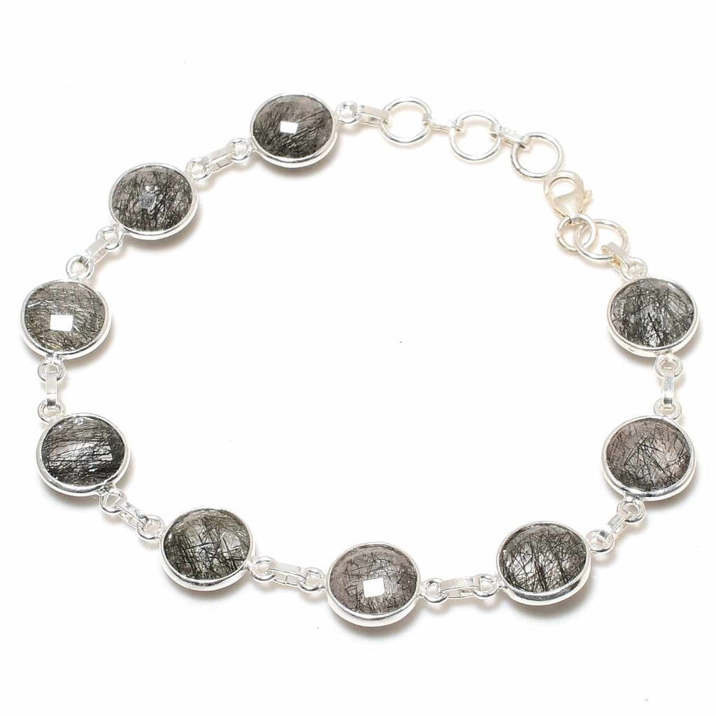 Natural Black Rutile 925 Solid Silver Chain Sister Ethnic New Bracelet Jewelry
