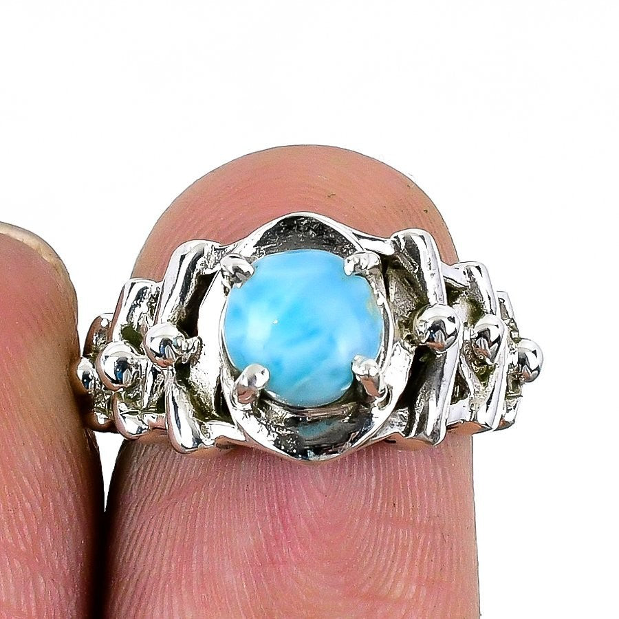 Republic Larimar Gemstone 925 Sterling Silver Statement Boho Ring Jewelry US 5.5