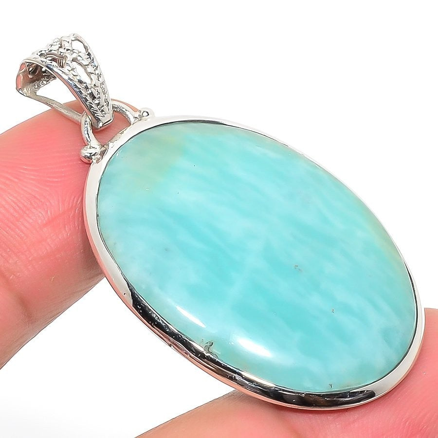 Natural Amazonite Solid Sterling Silver Wife Engagement Elegant Pendant Jewelry