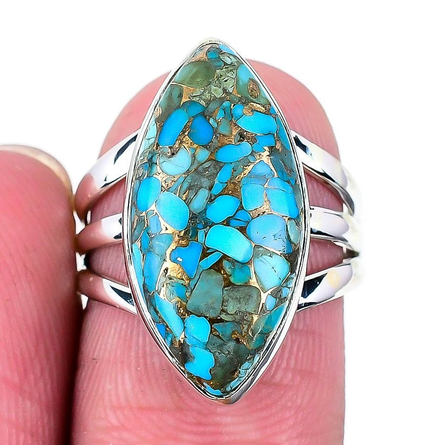 Natural Turquoise In Pyrite 925 Silver Cluster Birthday Ring Jewelry Size 6.5