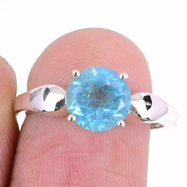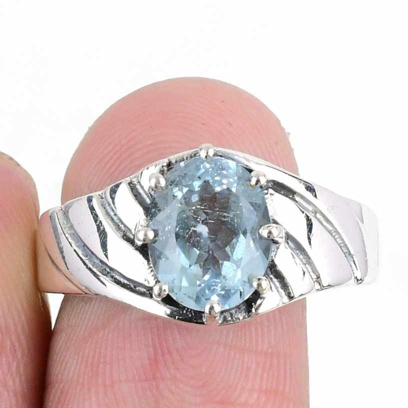Natural Swiss Blue topaz Solid Sterling Silver Wife Cluster Ethnic Ring Size 7.5