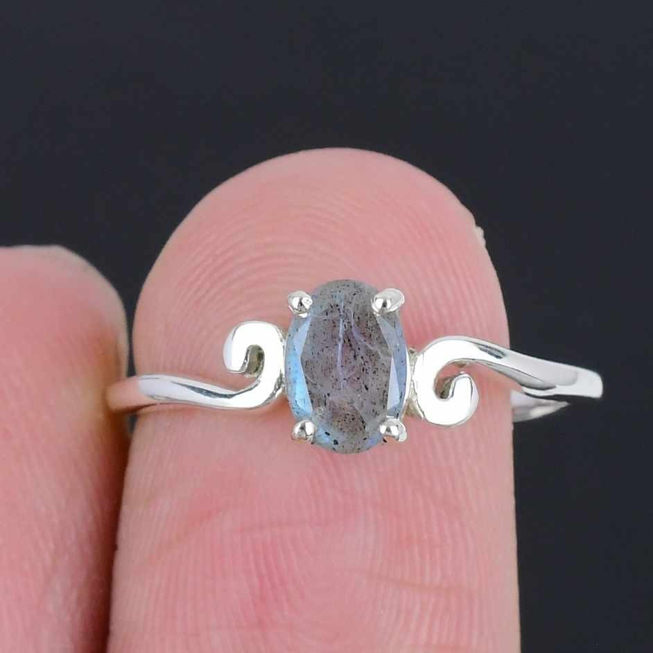 Labradorite Gemstone Anniversary Cluster Wedding Ring Size 8 925 Sterling Silver