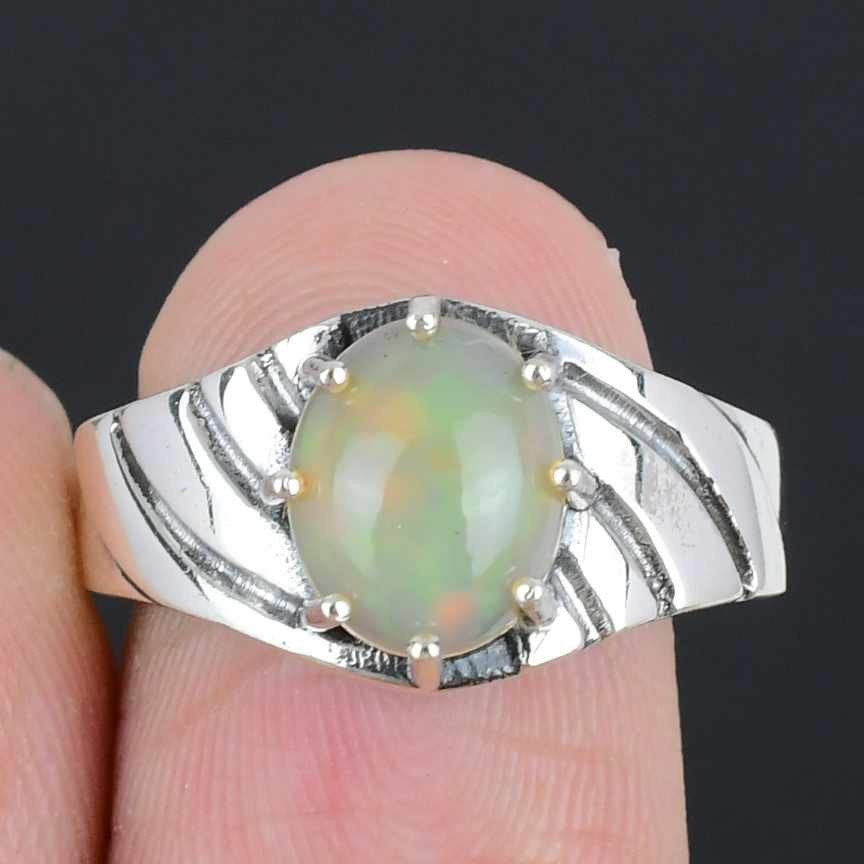 Natural Ethiopian Opal 925 Sterling Silver Cluster Sister Ring Jewelry Size 7