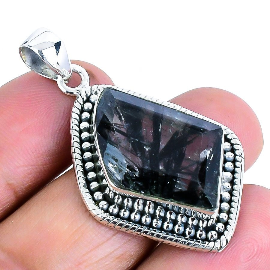 Natural Black Rutile Faceted Sterling Silver Solar Chakra Daughter Gift Pendant
