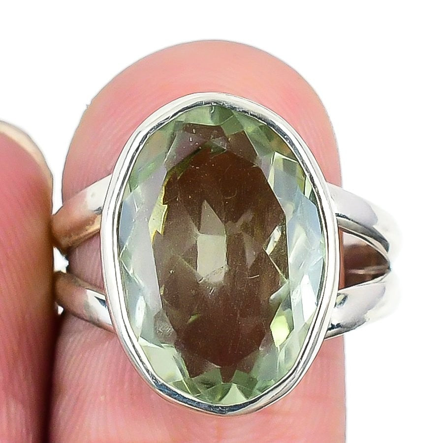 Green Amethyst Stone Solid Sterling Silver Bezel Statement Ring Jewelry Size 9