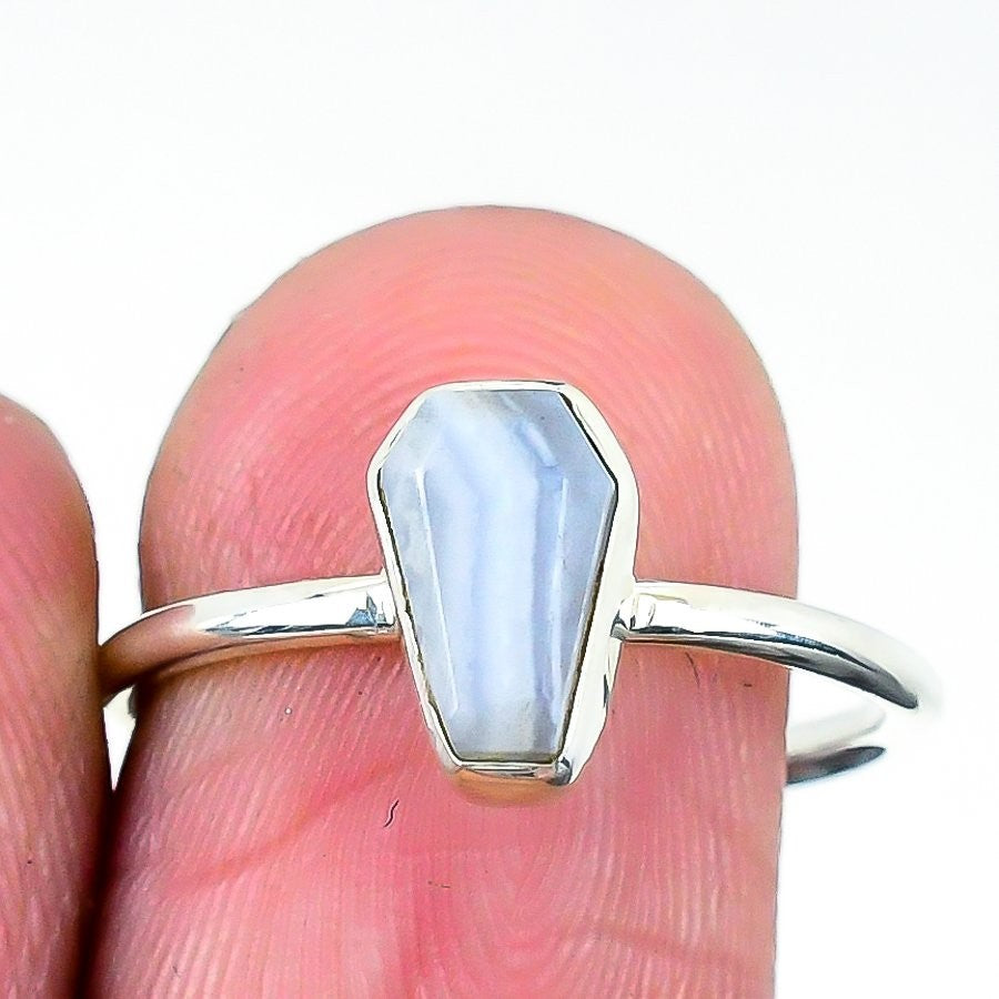 Natural Blue Lace Agate Solid Sterling Silver Promise Band New Ring Jewelry US 8