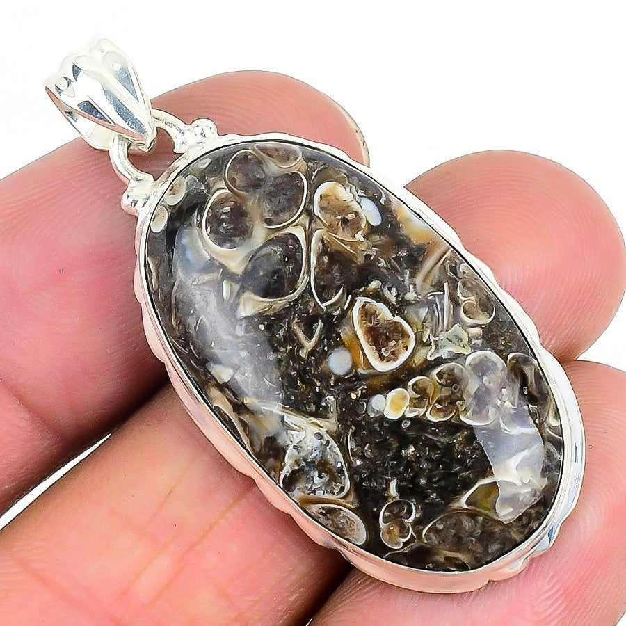 Turtilla Fossil Stone Solid Sterling Silver Birthday Anniversary Pendant Jewelry