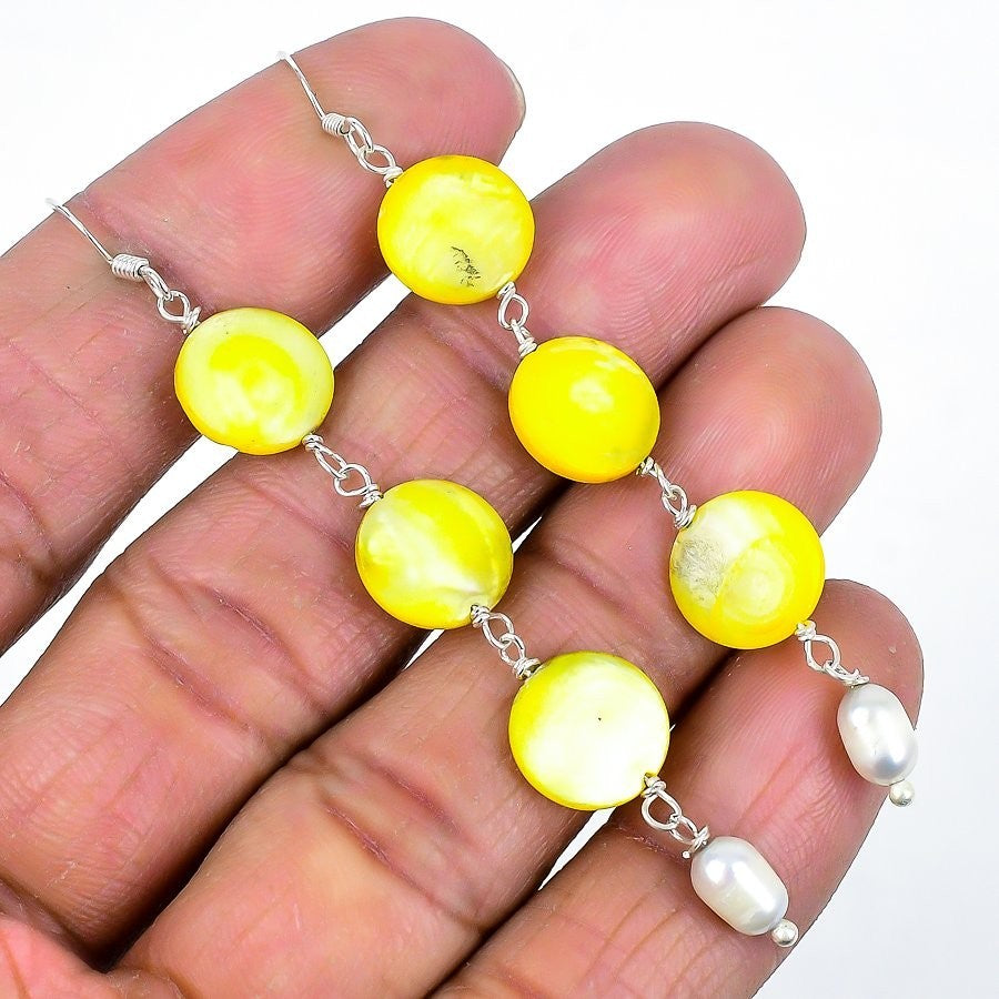 Yellow Blister Pearl Stone 925 Sterling Silver Sister Drop Dangle New Earrings