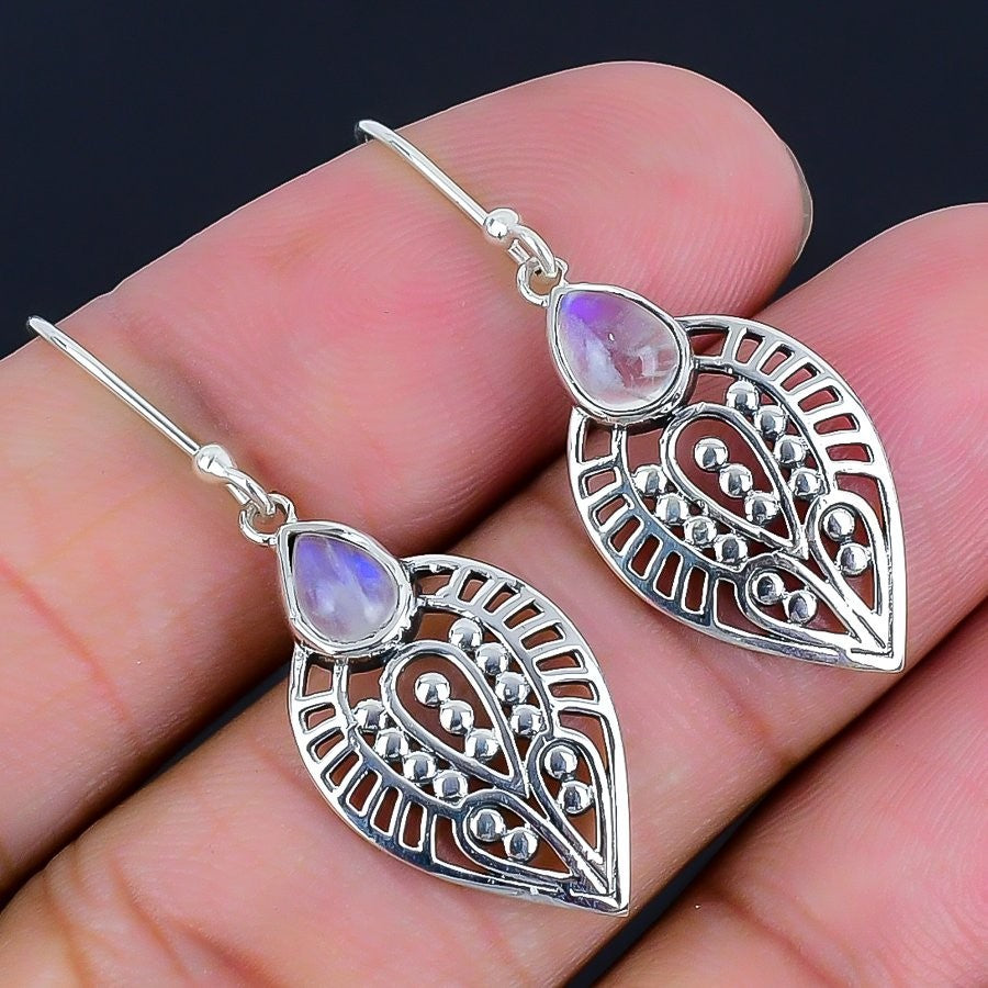 Natural Moonstone Hook Wife New Dangle Drop Earrings Jewelry 925 Sterling Silver