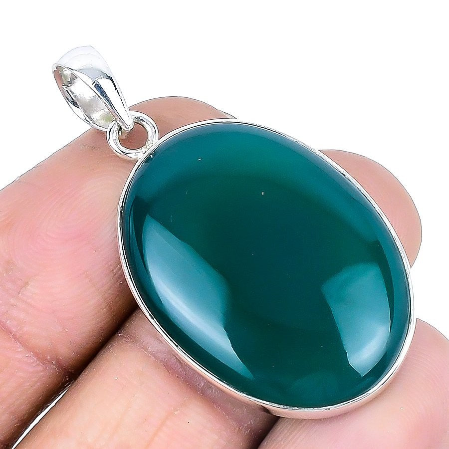Green Onyx Stone 925Ā SolidĀ Silver Engagement Elegant Sister Anniversary Pendant