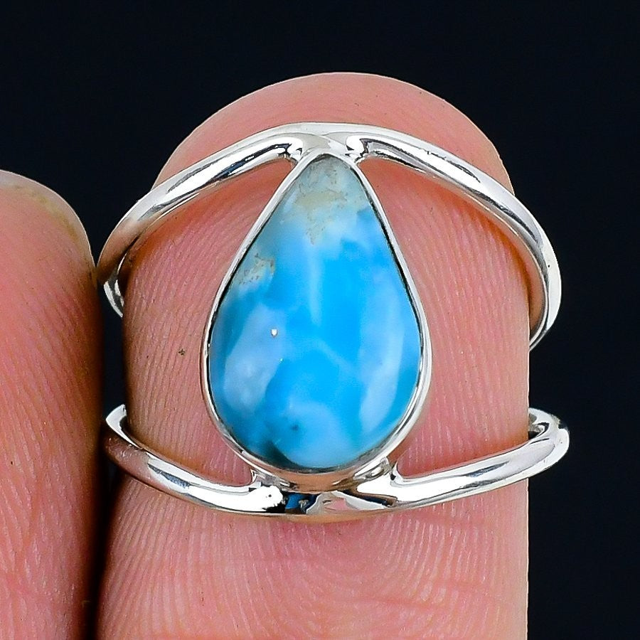 Republic Larimar Stone 925 Sterling Silver Unique Statement Bezel Ring Size 6