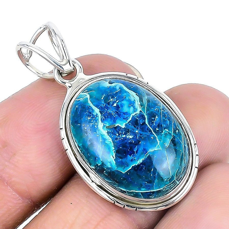 Throat Chakra Chrysocolla Gemstone 925Ā SolidĀ Silver Ethnic Wife Pendant Jewelry
