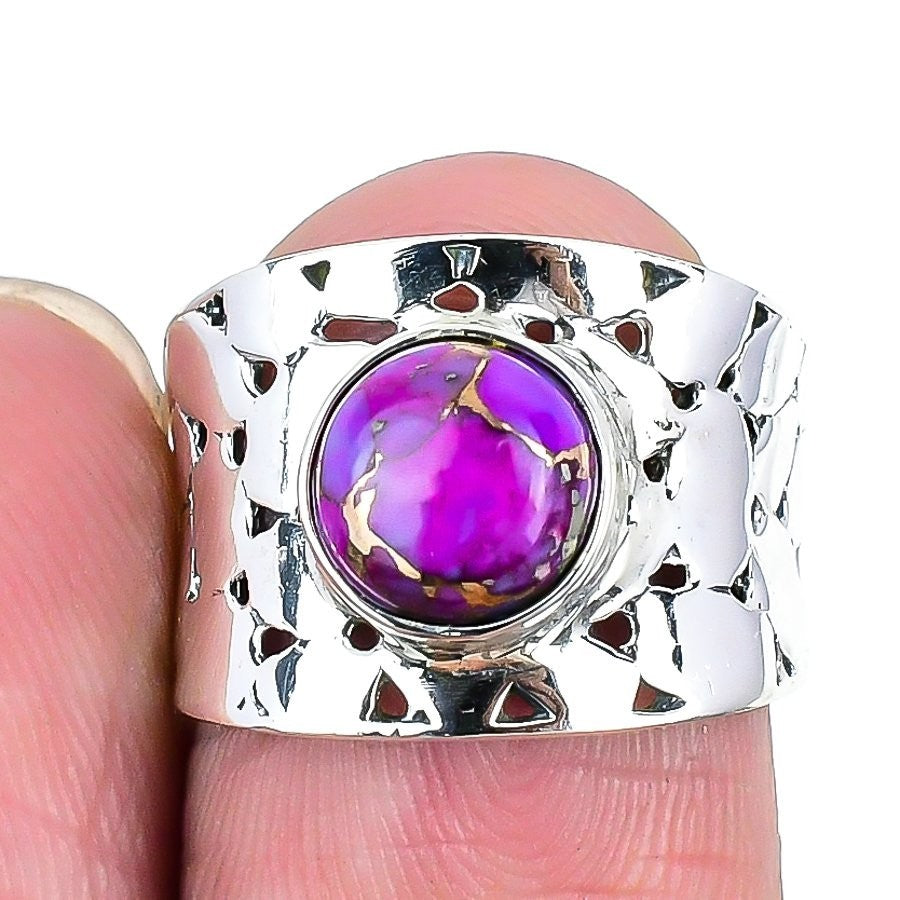 Purple Copper turquoise Gemstone Sterling Silver Bezel Statement Wife Ring US 6