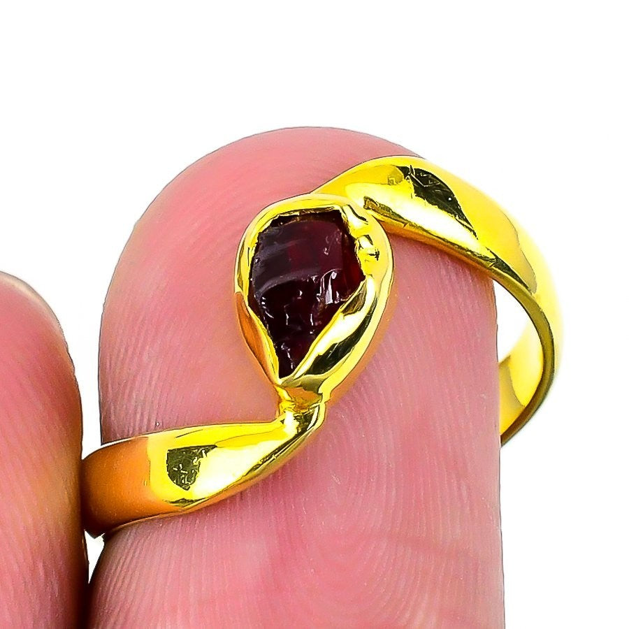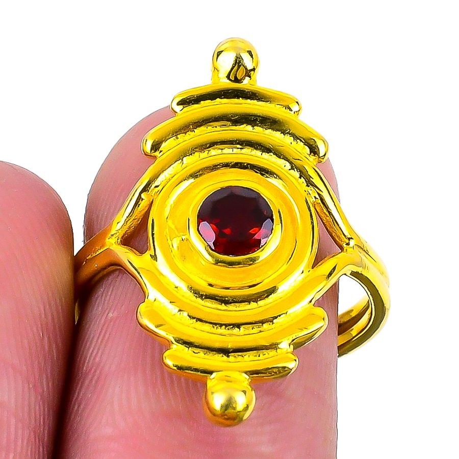 Natural Mozambique Garnet 925Ā SolidĀ Silver Gold Vermeil Statement Ring Jewelry