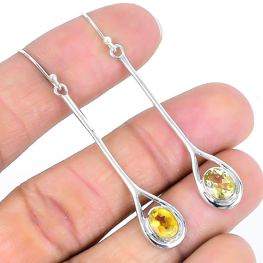 Citrine Faceted Stone 925 Silver Dangle Drop Best Daughters Gift Mother Earrings