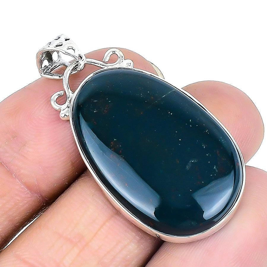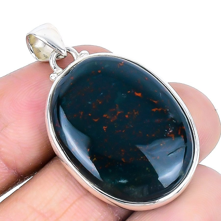 Root Chakra Natural Bloodstone Solid Sterling Silver Daughter Pendant Jewelry