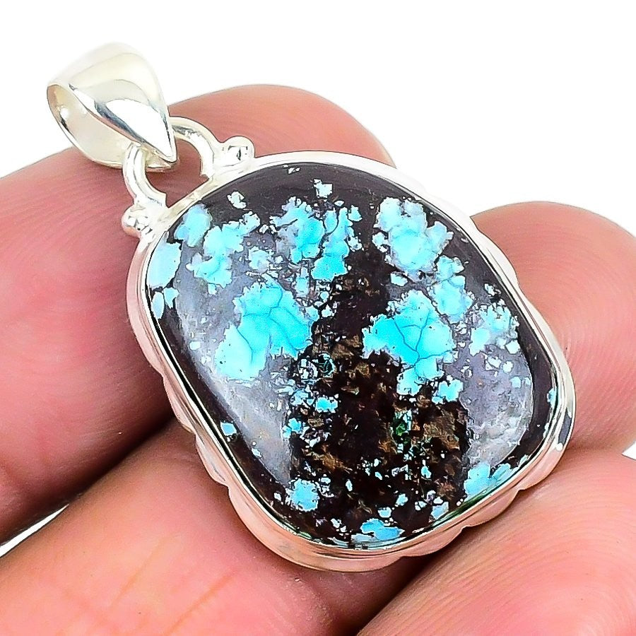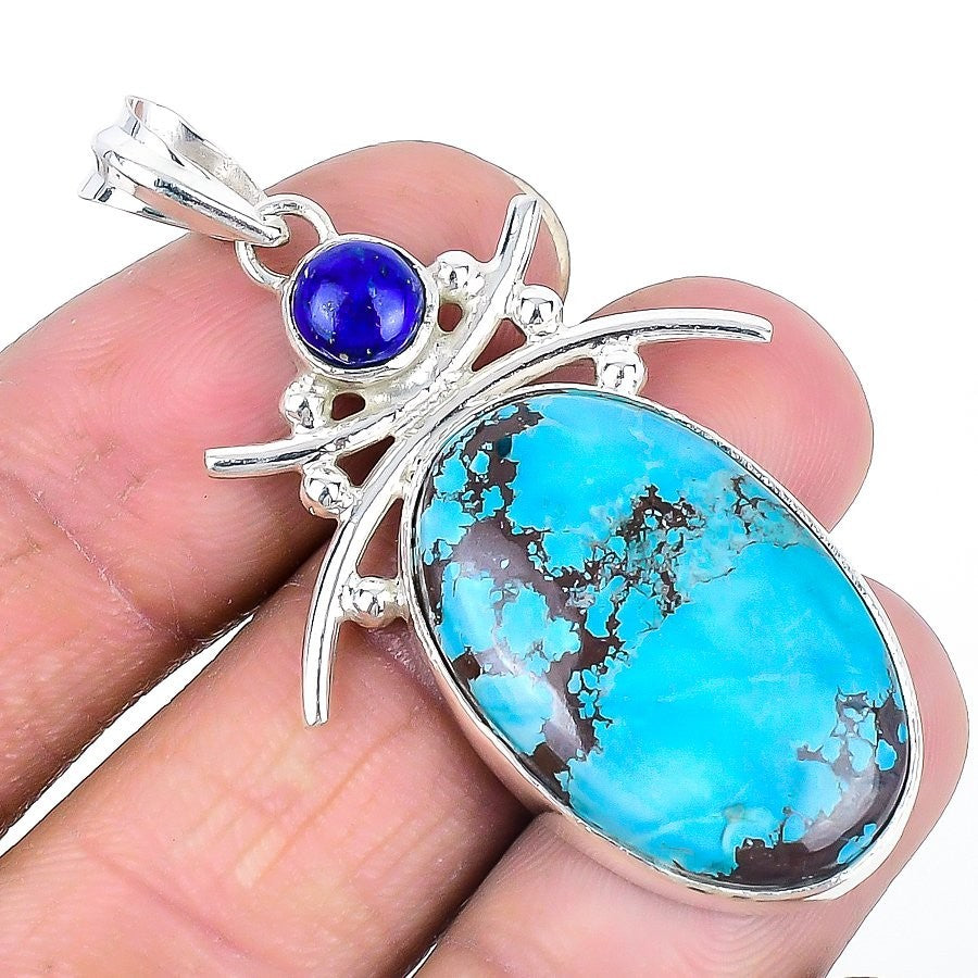 Throat Chakra Tibetan Turquoise Gemstone Mother Trendy Pendant 925Ā SolidĀ Silver