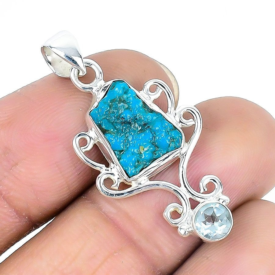 Daughters Day Sale Turquoise Gemstone December New Pendant Solid Sterling Silver