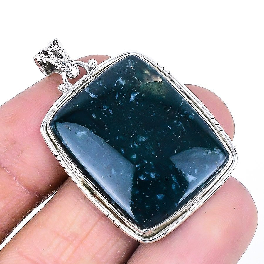 Indian Moss Agate Gemstone Solid Sterling Silver Wife Birthday Pendant Jewelry