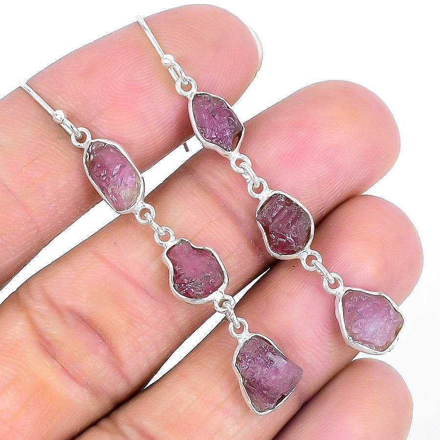 Pink Tourmaline Druzy Stone Dangle Drop New Earrings Jewelry 925 Sterling Silver