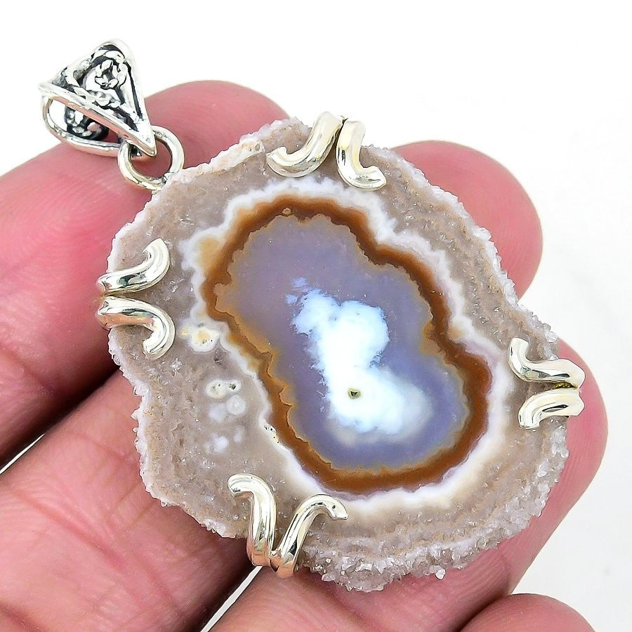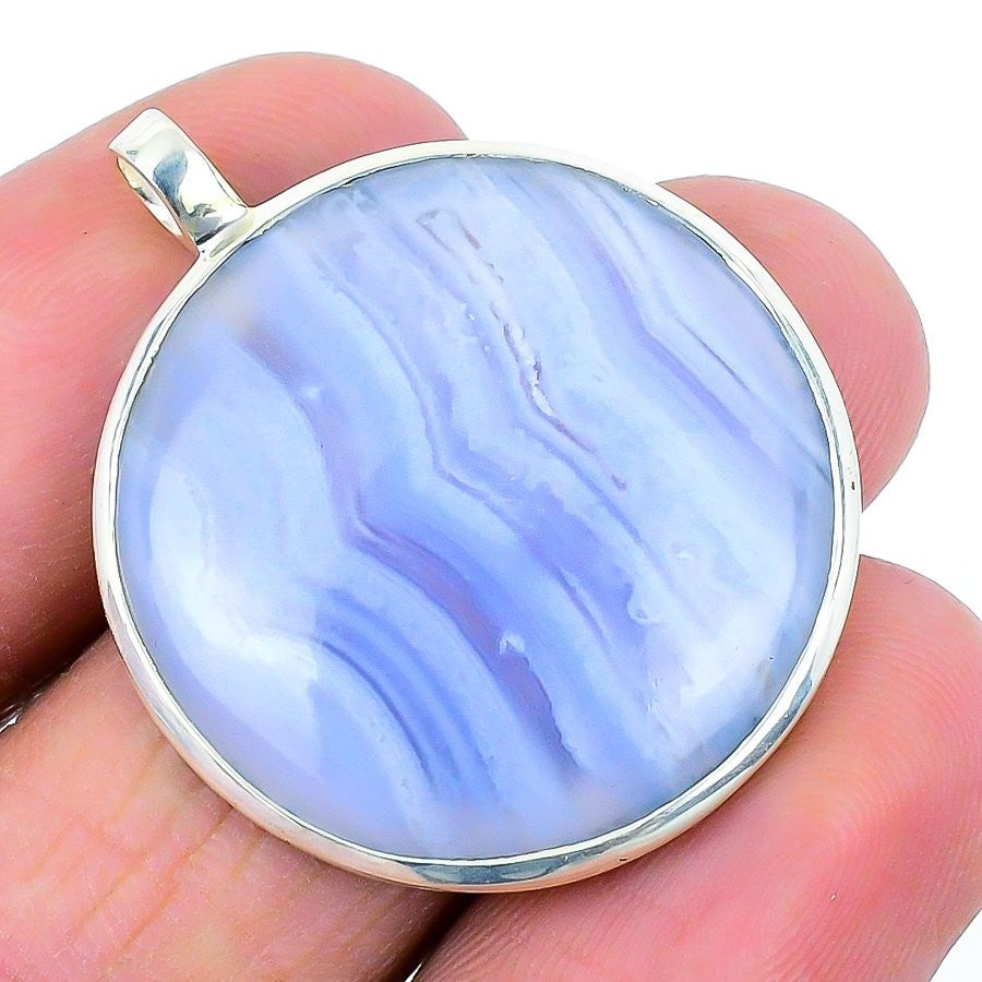 Blue Lace Agate Stone 925 Sterling Silver Trendy Birthday Mother Pendant Jewelry