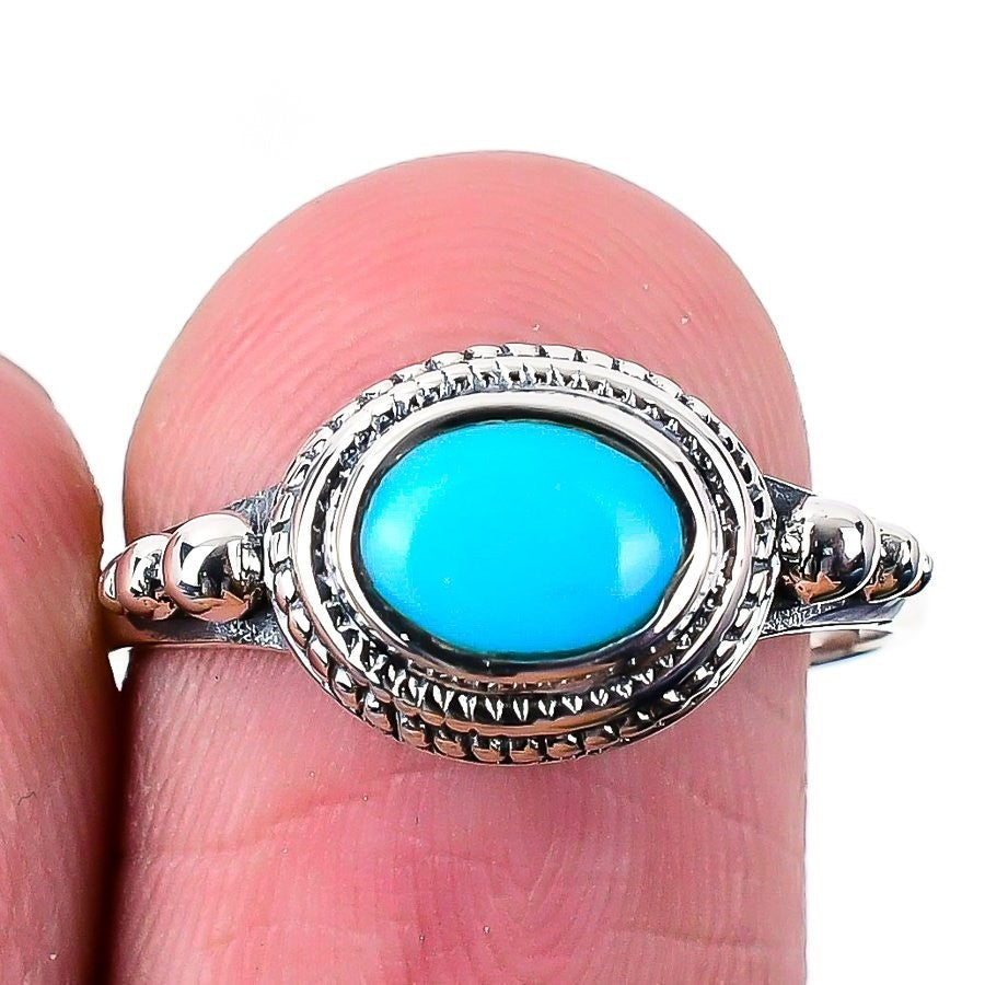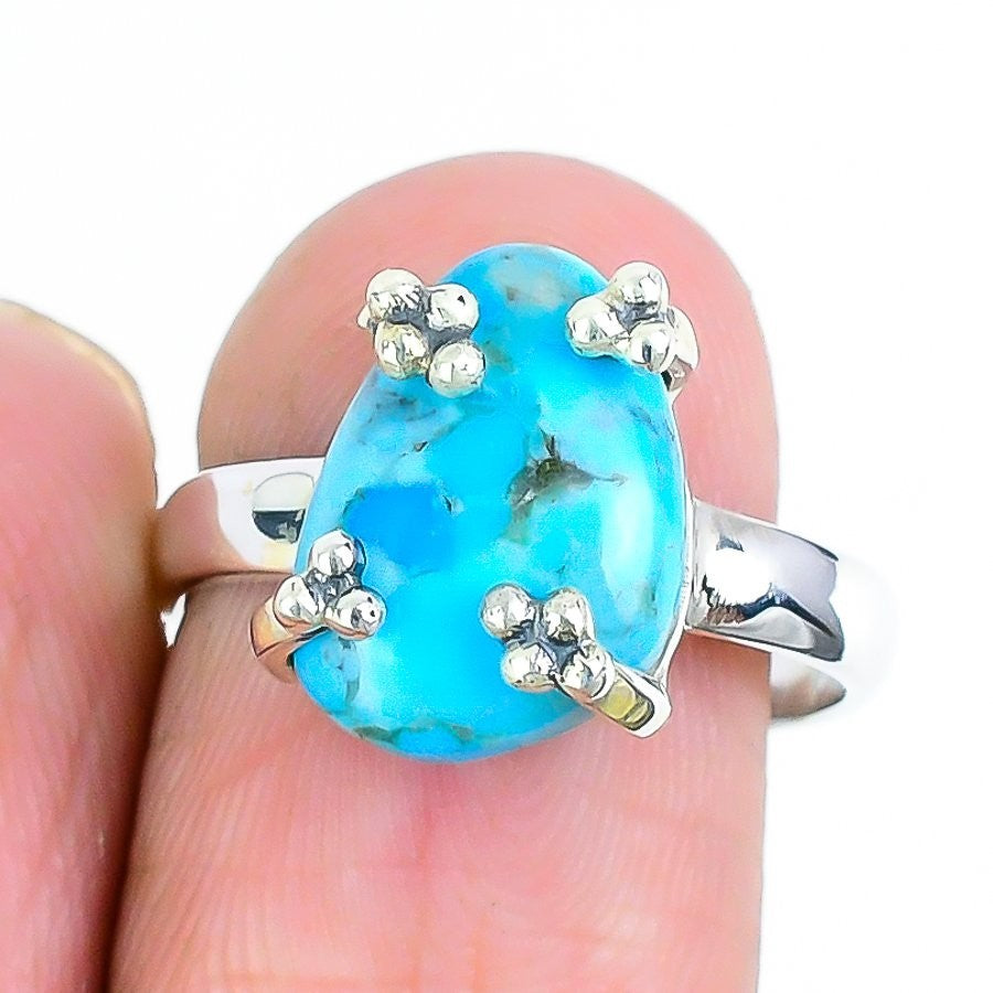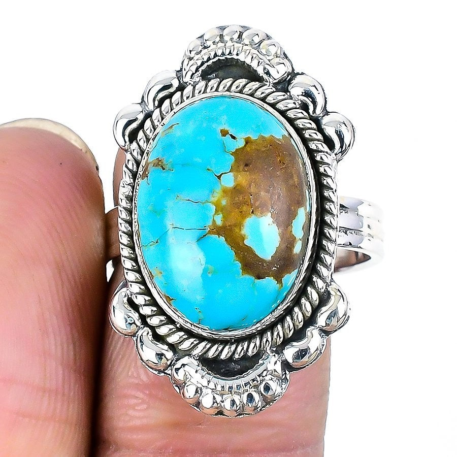 Natural Sleeping Turquoise Sterling Silver Mother Statement Ring Jewelry US 8