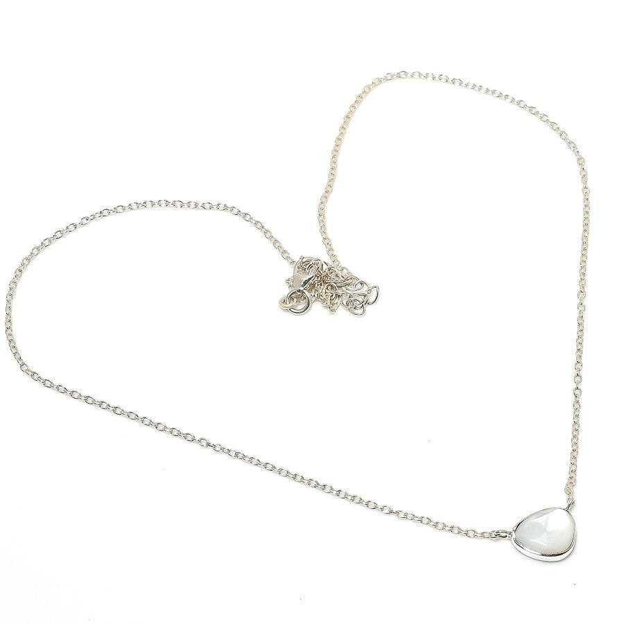 White Monalisa Stone 925 Solid Silver Chain Trendy Ethnic New Necklace Jewelry