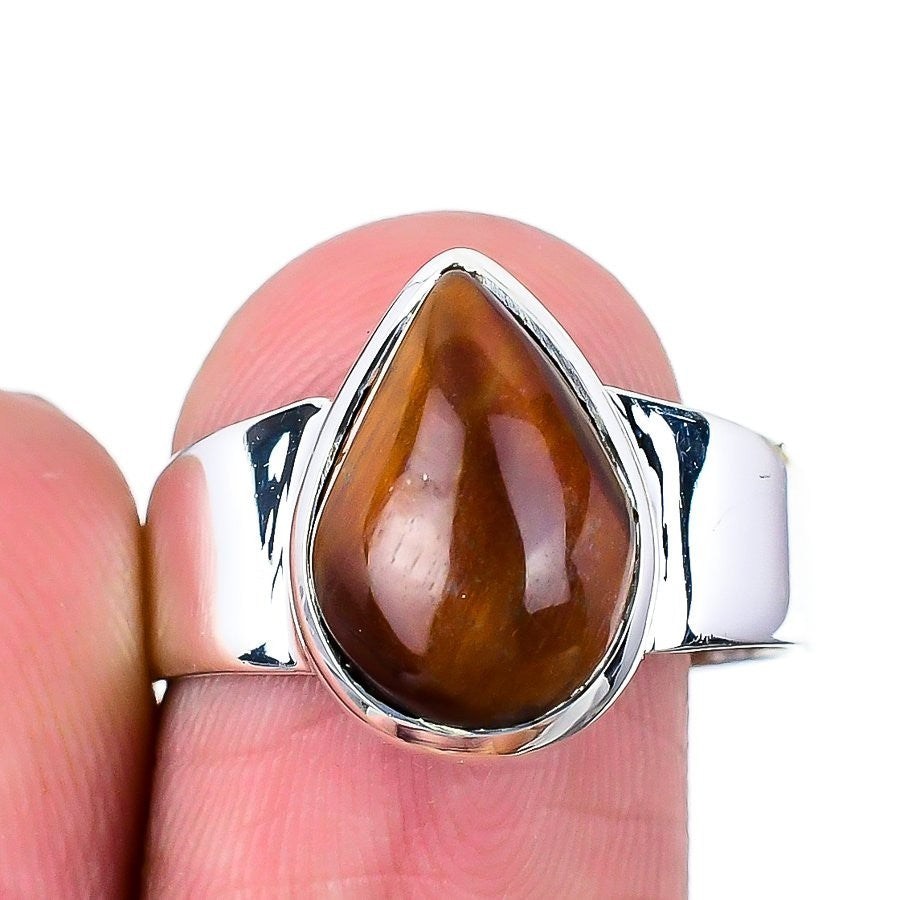 Sacral Chakra Tiger Eye Stone 925 Silver Wife Statement Anniversary Ring Size 10
