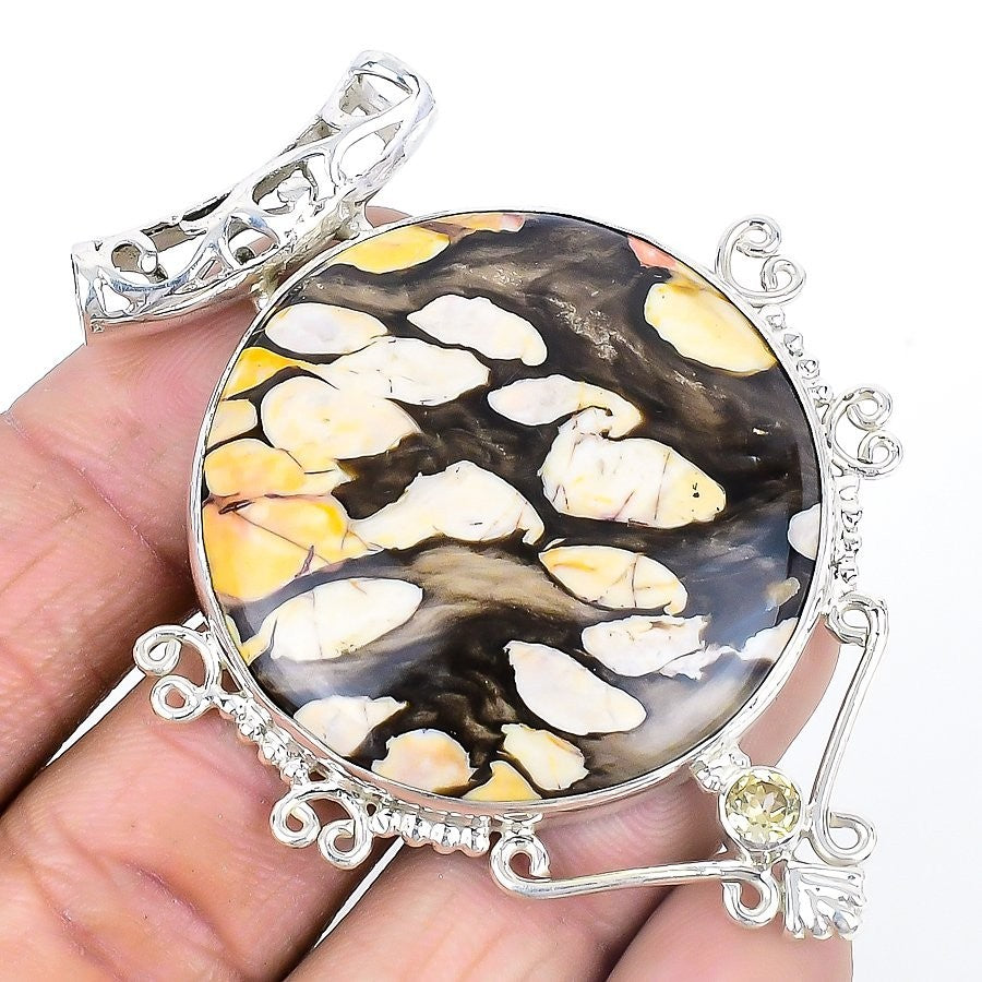Natural Peanut Wood Jasper Daughter Trendy Art Deco Pendant Jewelry Solid Silver