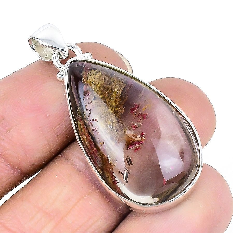 Lodolite Quartz Stone 925 Silver Artisan Boho Engagement Mother Pendant Jewelry