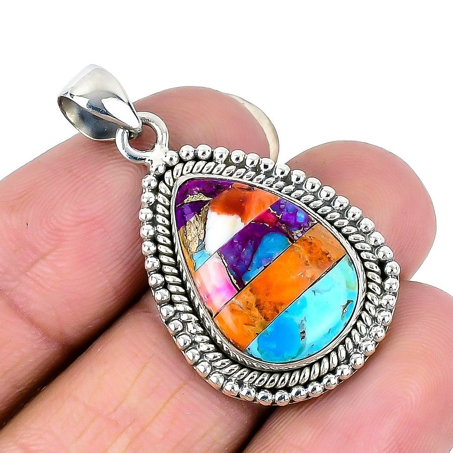 Natural Spiny Oyster matrix 925 Sterling Silver Engagement Handcrafted Pendant