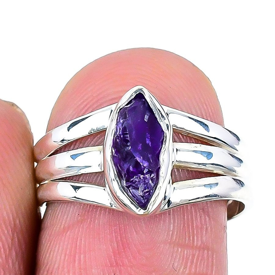Daughters Day Sale Amethyst Stone 925 Silver Statement Engagement Ring Jewelry