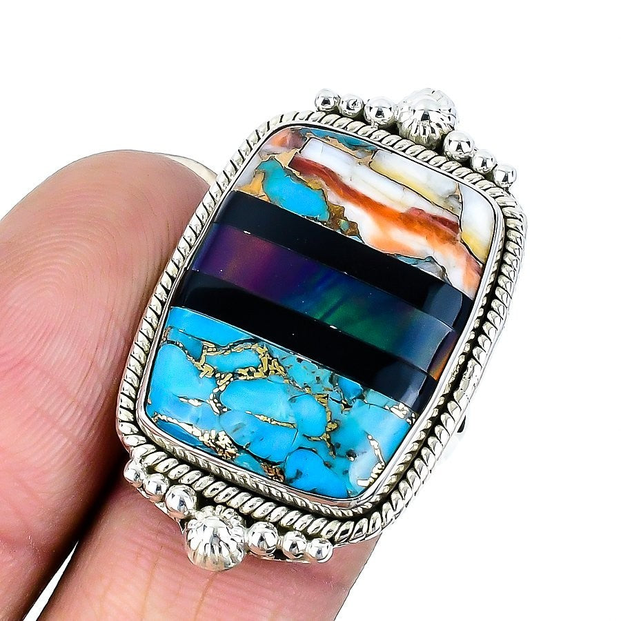 Spiny Oyster Matrix Stone Wedding Wife Statement Ring Size 8 925 Sterling Silver