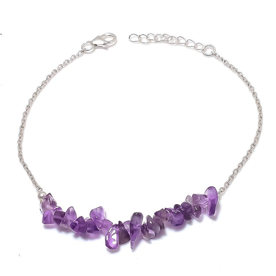 Amethyst Druzy Gemstone 925 Sterling Silver Handmade Hook Wife Chain Bracelet