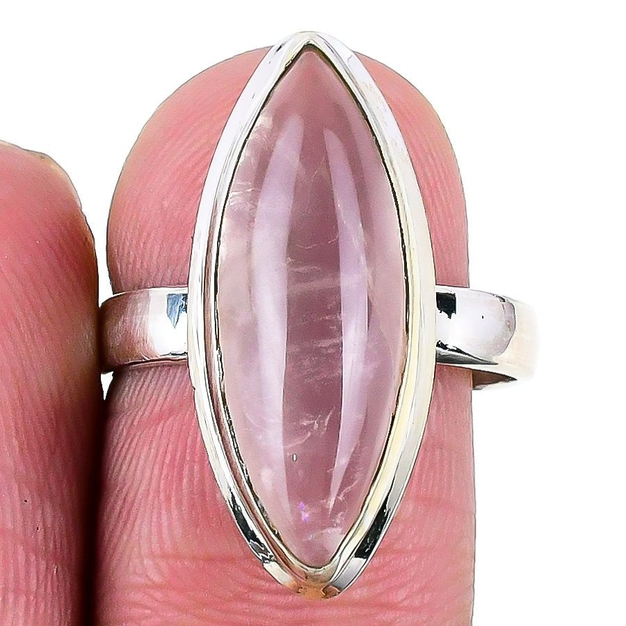 Rose Quartz Stone 925 Solid Silver Engagement Boho Statement Ring Jewelry US 8.5