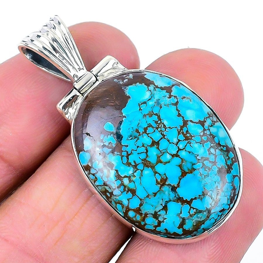 Tibetan Turquoise Gemstone 925Ā SolidĀ Silver Handmade Handcrafted Pendant Jewelry