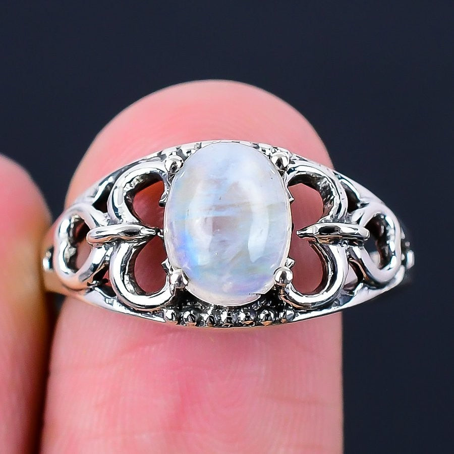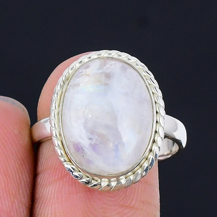 Rainbow Moonstone Gemstone Solid Silver Daughters Day Statement Wife Ring US 6