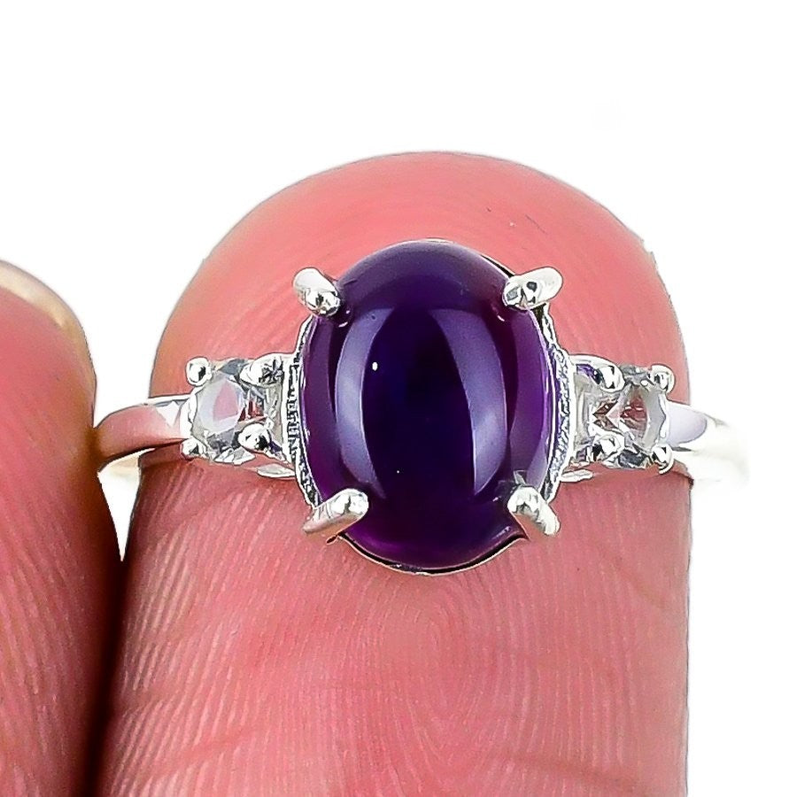 Sage Amethyst Stone Statement Unique Daughter Gift Sister Ring 925Ā SolidĀ Silver