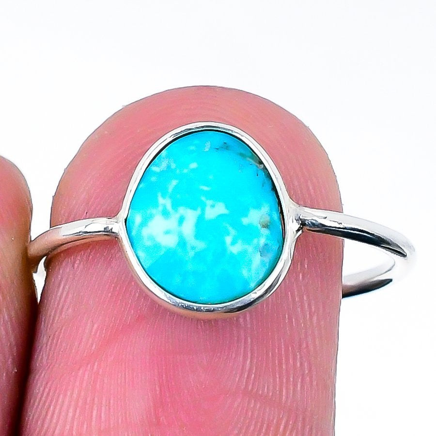 Arizona Turquoise Stone Promise Band Sister Ring Jewelry Size 7.5 Solid Silver