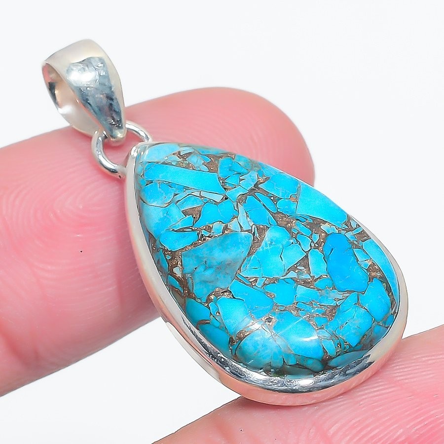 Copper Turquoise Stone 925Ā SolidĀ Silver Art Deco Anniversary New Pendant Jewelry