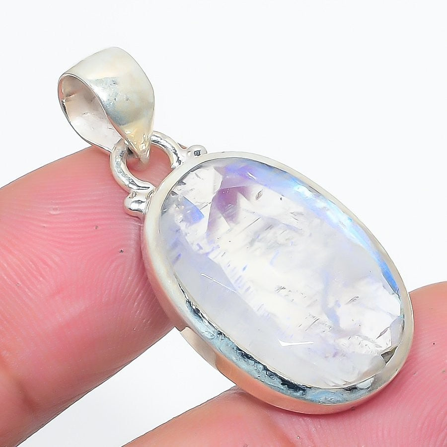 Rainbow Moonstone Gemstone 925 Sterling Silver Crown Chakra Sister New Pendant