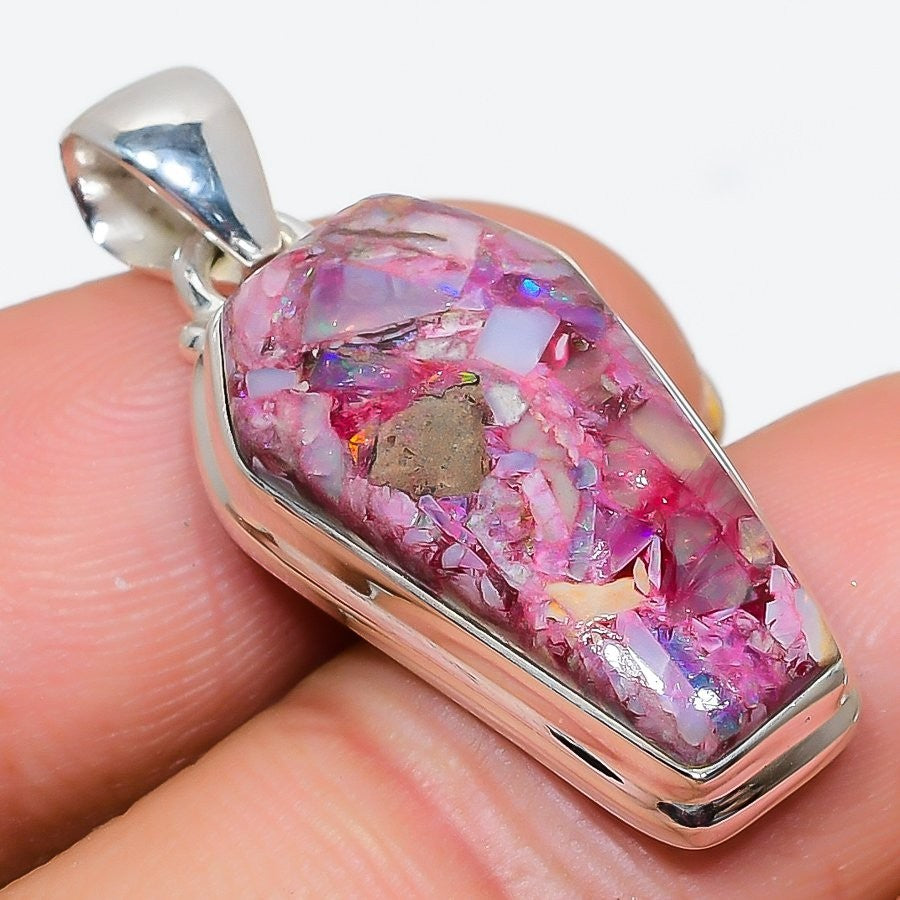Natural Kingman Pink Spiny Turquoise 925 Silver Art Deco Mother Pendant Jewelry